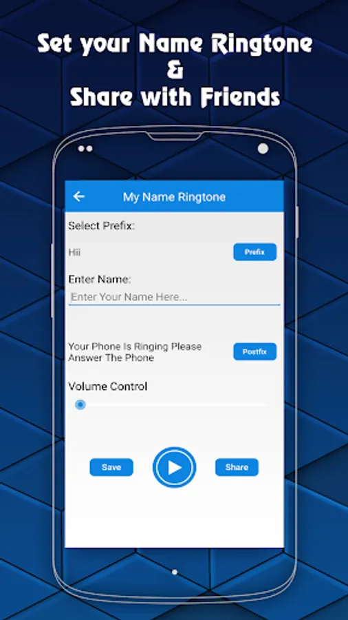 Name Ringtone Maker is tool to create your name ringtone.and Name Ringtone Maker app is free on play store.Name Ringtone Maker is called out when someone is calling you, rather than regular boring ringtones. Name Ringtone Maker Announcement from the app helps you understand who is calling you without looking at the phone.