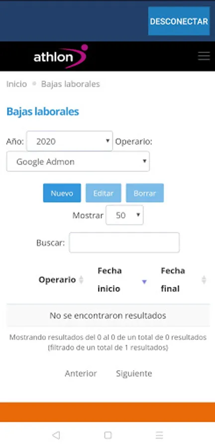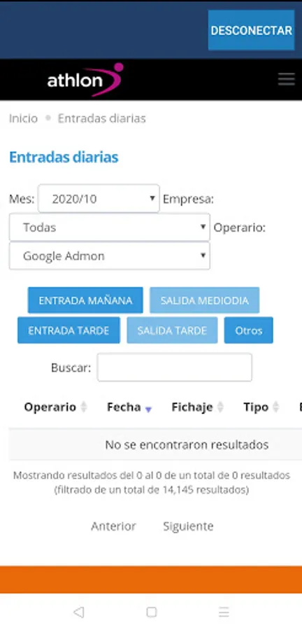 Athlon Control Schedule, allows the workers (technicians) of the company to carry out the daily transfers of their working hours, as well as to request vacations.