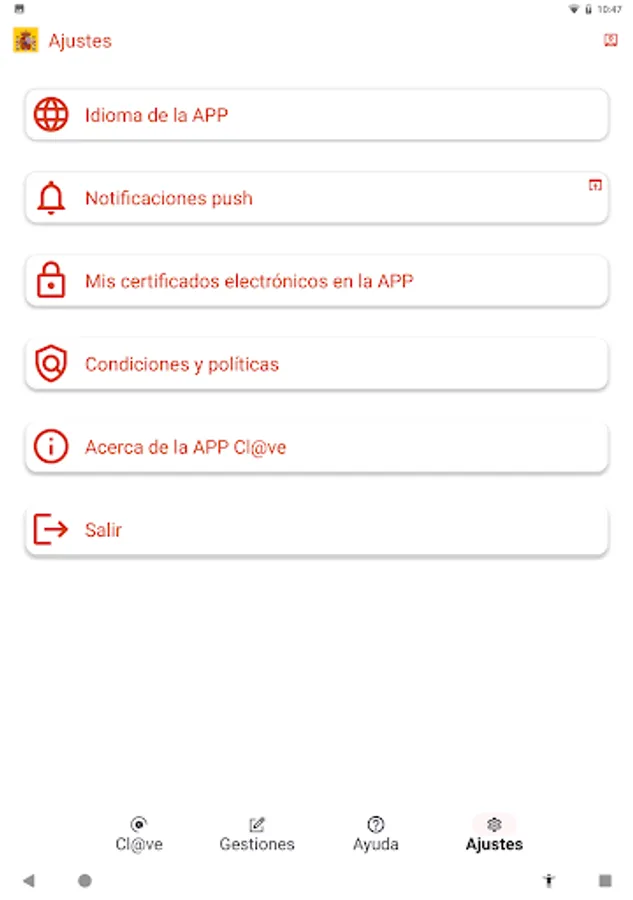 You can access the accessibility statement in the APP itself and at https://sede.agenciatributaria.gob.es/Sede/accesibilidadAppClave.shtml
