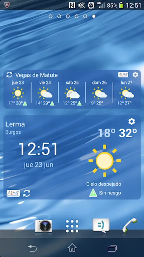 - Widgets with geolocation and the possibility of a transparent background, one with the daily forecast and another with the five-day forecast for the selected municipality.