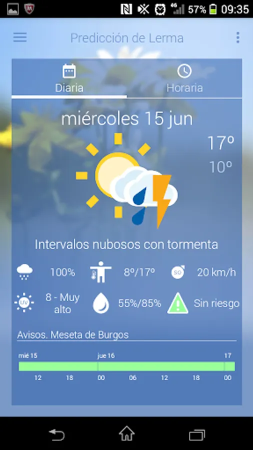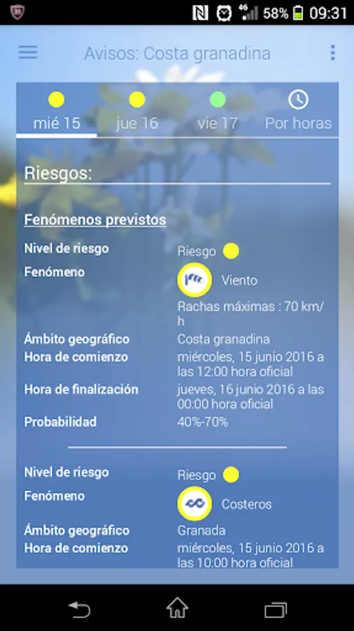 - Notifications for warnings of adverse meteorological phenomena corresponding to your favorite municipalities.