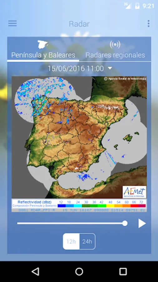 - Possibility of sharing weather information or directly accessing the AEMET website (pressing +info) to see more details.