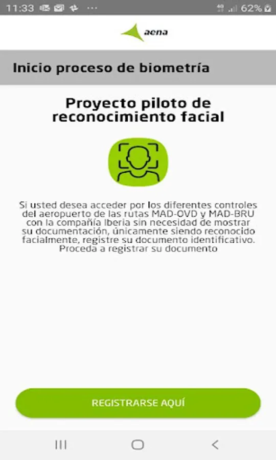 If you would like to go through the airport checkpoints using facial recognition and without the need to show your documentation, please register.