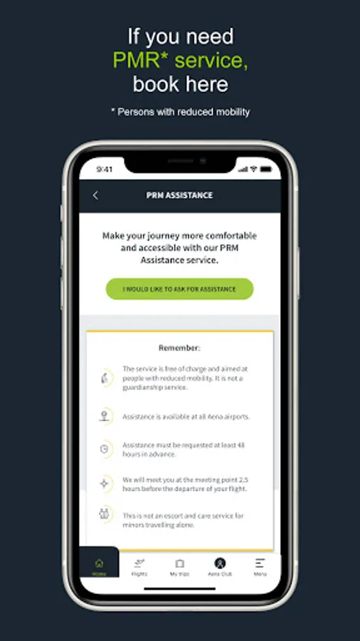 • Request PRM services directly from the App.