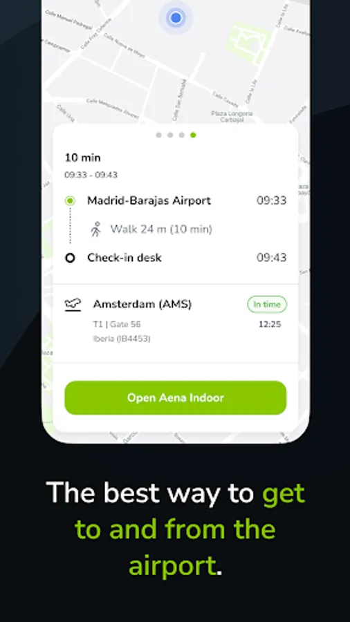 Are you taking off or landing at the airport?: we guide you from your home to the boarding gate showing the best way to get to the city with information on flights in real time, Aena parking or fast track.