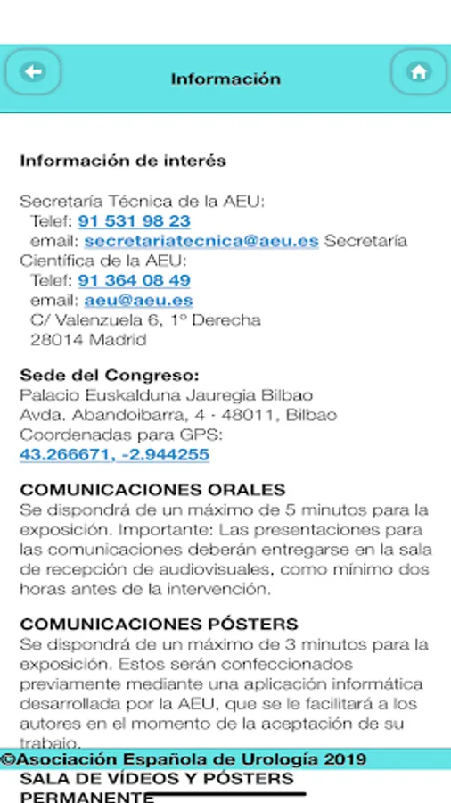 This is the official APP of the LXXXIV National Congress of Urology, held in Bilbao on 12, 13, 14 and 15 June 2019.