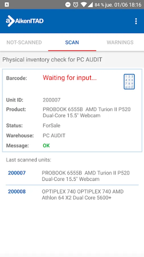 Companion App to the AikenITAD ERP product - Can't be used standalone. This app allows the user to scan product barcodes during an inventory check.