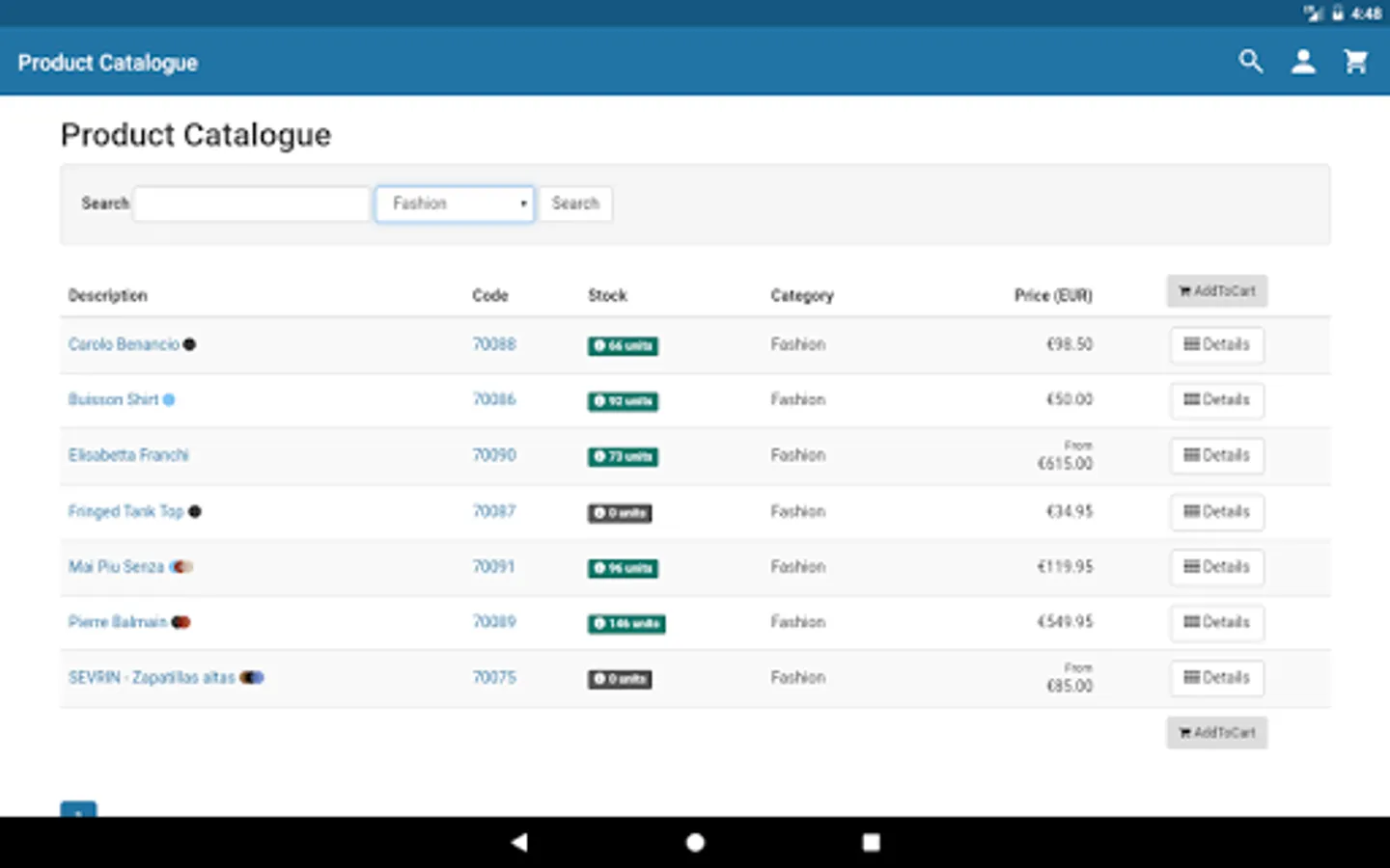 The iDynamics Commerce app lets users browse the catalog, search for products, and place orders directly from their mobile on eCommerce platforms based on iDynamics Commerce. IDynamics Commerce customers have access to their basket, order history, invoices, subscriptions, etc. All purchases made from the iDynamics Commerce app go directly to