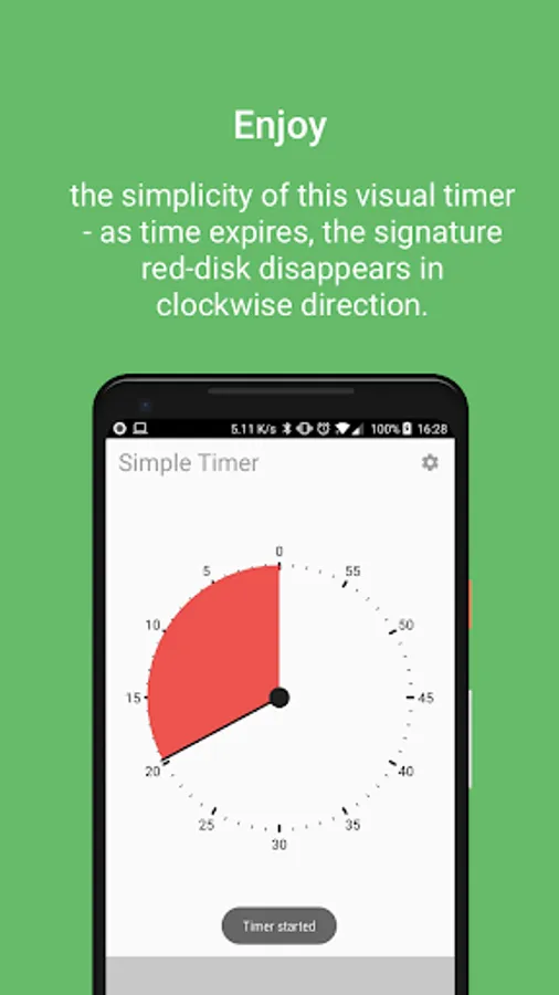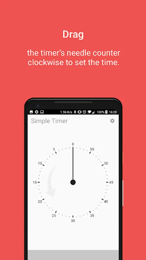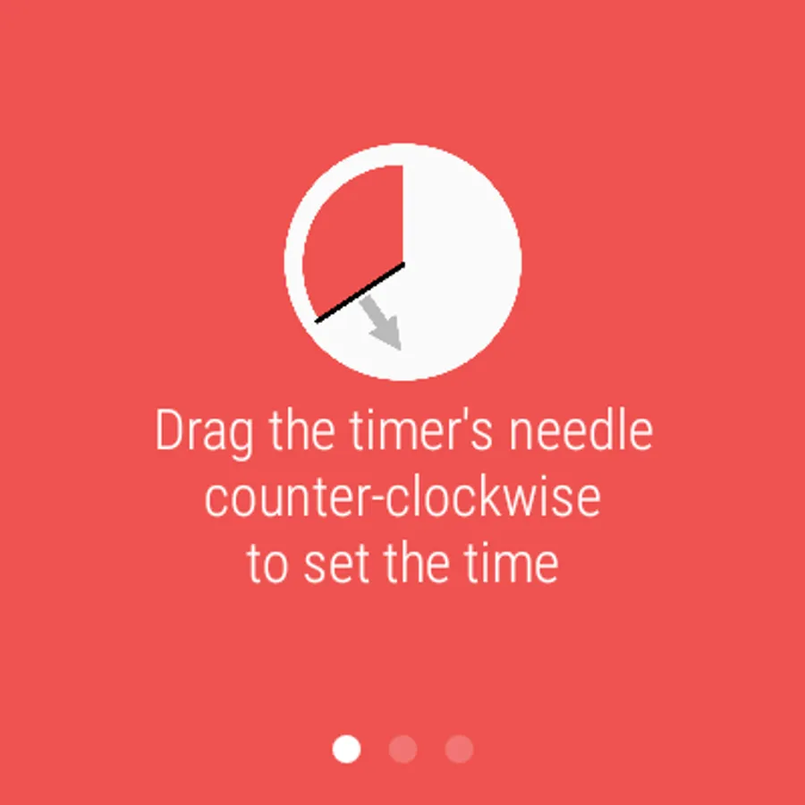 - Very simple interface - just drag the timer´s needle counter clockwise to set the time.