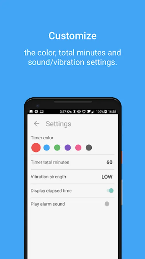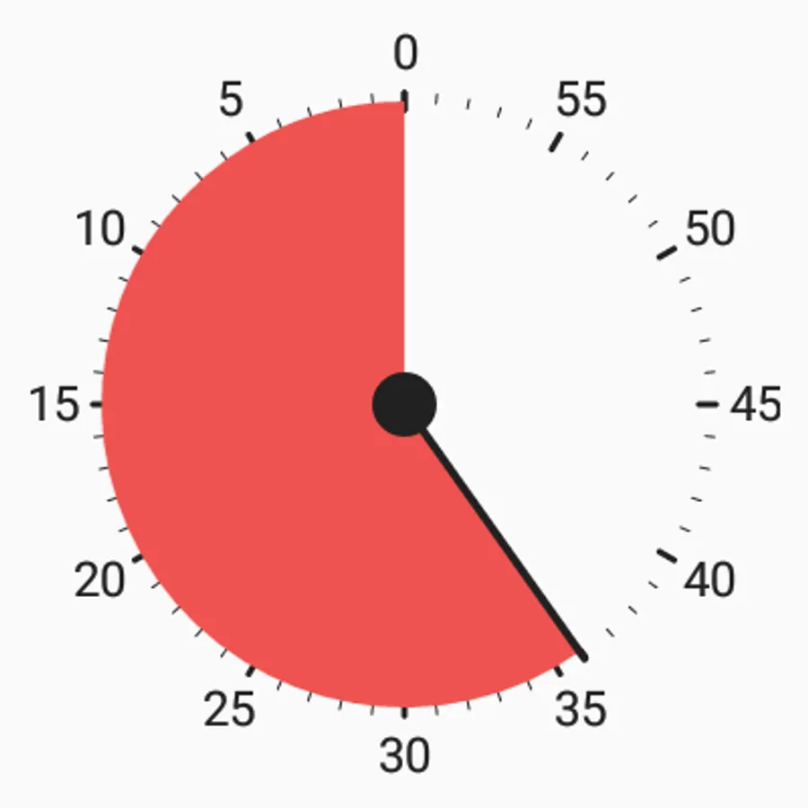 - Visual representation of time - as time expires, the signature red-disk disappears in clockwise direction.