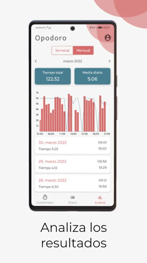 Thanks to Opodoro's main stopwatch you will record all the daily time spent on your opposition. You will be able to see a daily summary and a weekly or monthly analysis to see which days you have given everything and which ones you should improve. Set realistic study goals and try to meet them every day.