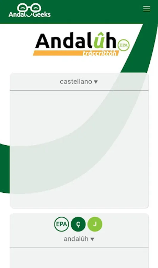 The Castellano-Andalûh EPA Transcriber is a tool that allows you to pass a text written according to the standard Spanish standards to the standard Andalûh EPA standards.