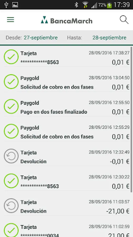 Use your mobile as a point of sale terminal and make secure payments with debit and credit cards. The Banca March Mobile POS terminal complies with all pci-dcc security standards. You only need your smartphone, the “Banca March Mobile POS” application and a bluetooth pinpad.