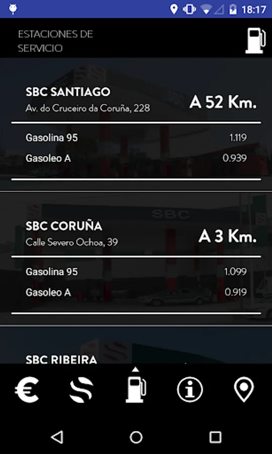 With our app you can see among other things where SBC station nearest your position as well as the path to it is. Also updated our fuel prices, these being the best in the market.