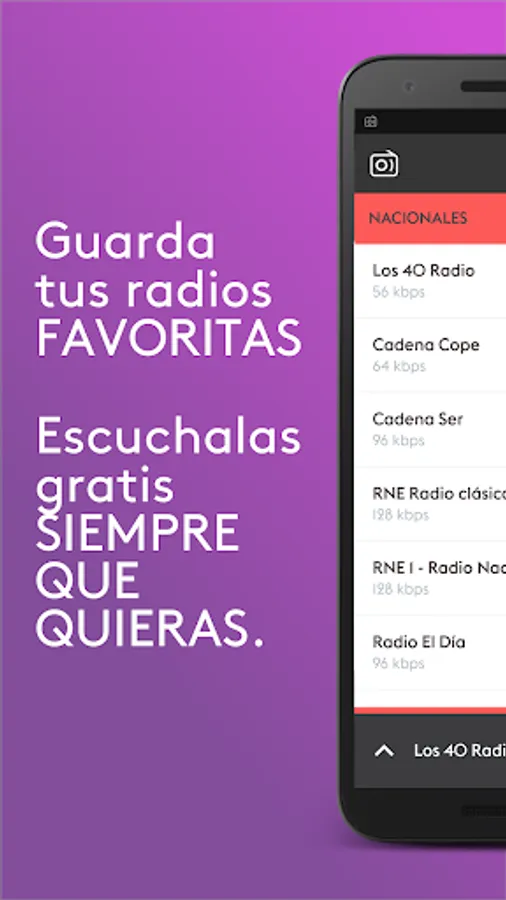 Whether you want to listen to football on Cadena Cope , enjoy the radio formula of Los 40 or connect with the radio of your region; You can do all this in Radios de España . Always available on your mobile and with the highest quality. For a reason, it is the most popular radio station in Spain on Google Play. , More than 3 million users have already downloaded it!