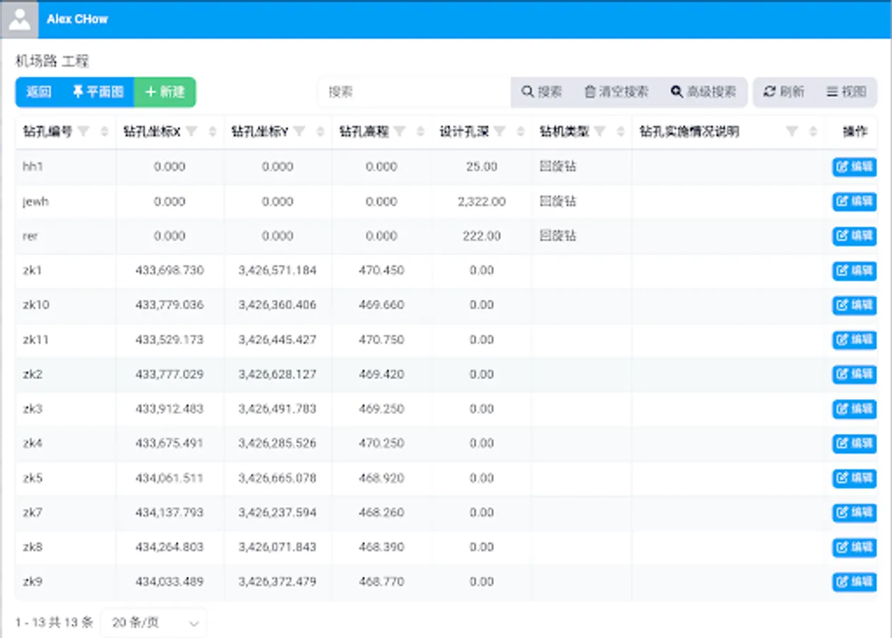 Reconnaissance catalog, viewing and editing files, site pictures, drilling records, engineering records project management and other functions.