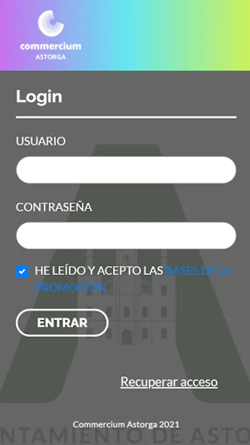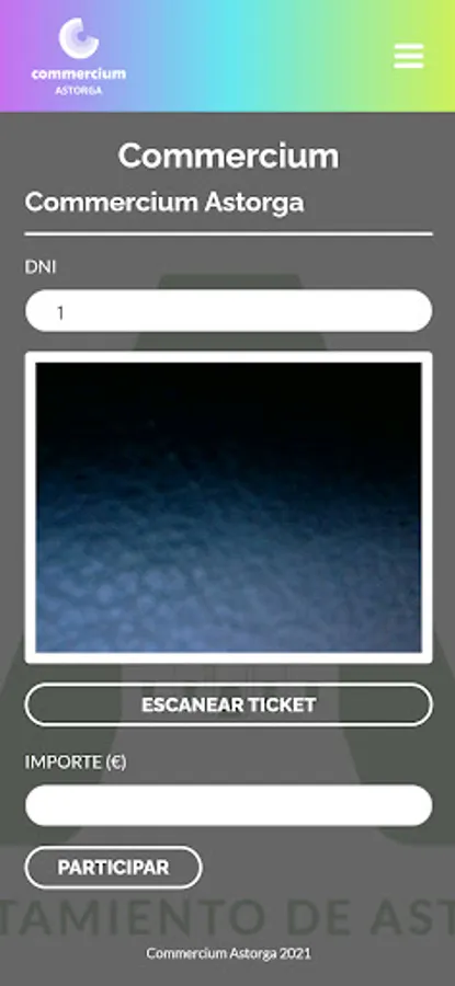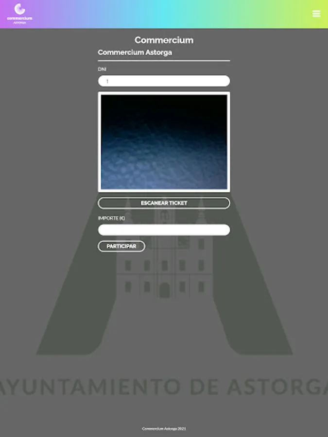 APP to register the participations of the clients in the Commercium Astorga promotion, and for the exchange of the prizes obtained in it. The app is for the use of companies.