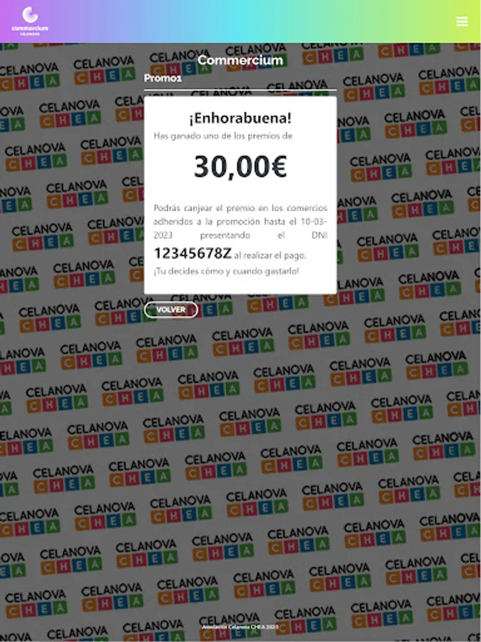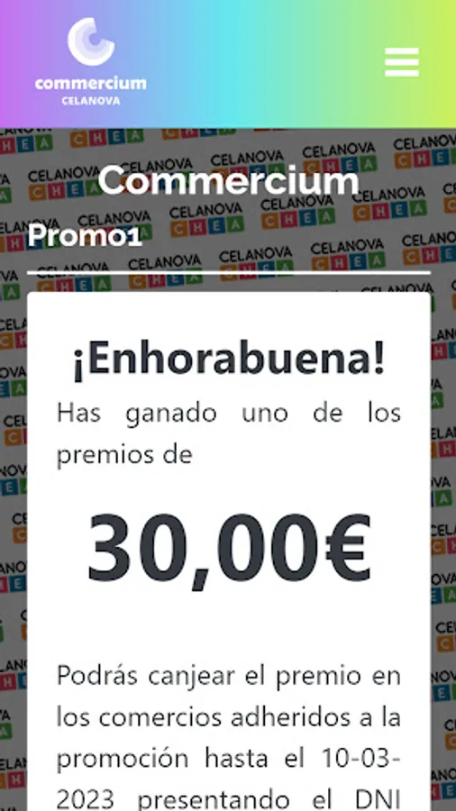 APP to register the participation of the clients of the companies registered in the Commercium Celanova promotions, and for the exchange of the prizes obtained in the same. The app is for the exclusive use of registered companies.