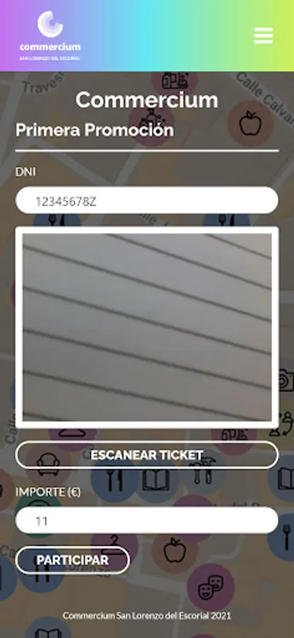 APP to register the participations of the clients in the promotions of Commercium San Lorenzo del Escorial, and for the exchange of the prizes obtained in them.