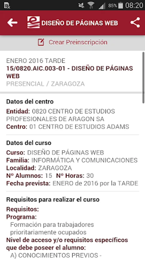 - Training: You can check the current training offer, in the future you can start the process of pre-registration and receive notifications regarding their applications.