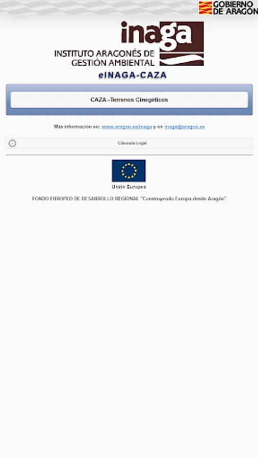 Mobility application that enables access to information about HUNTING managed by the Aragon Institute of Environmental Management (INAGA).