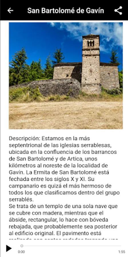 It is a georeferenced system that transmits multilingual information of tourist and cultural relevance on the Route of the Churches of Serrablo. Without the need for a specific physical support for audio guides, the visitor will listen to or read the explanations in their language, on their mobile phone through the App. The content of the App is managed from a website. The phone application, in addition to being accessible, can lead visually impaired visitors through the tour.
