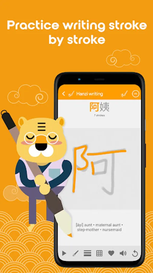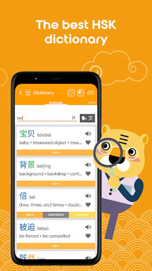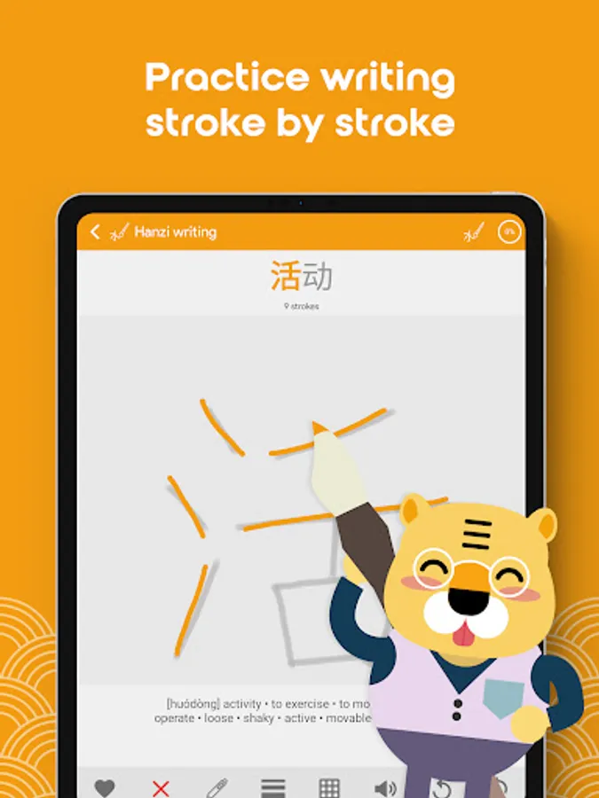 ● You will learn to write: an advanced writing system with automatic correction will allow you to easily learn how to write any Chinese character stroke by stroke.