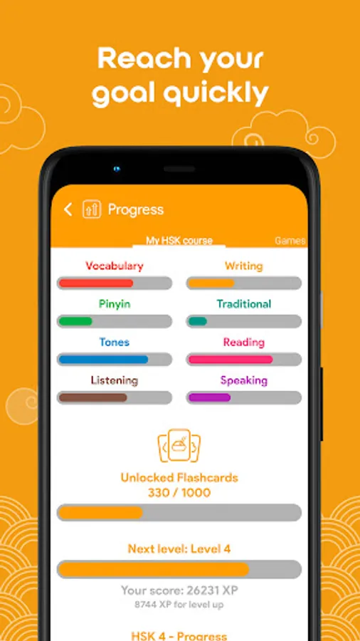 Stop wasting your time with boring books, highly expensive courses or heavy paper dictionaries. With Bingo's help you will be able to read, write and speak Chinese. Bingo is going to undertake your progress evaluation by analyzing your hit rate and failures. This way you may practice and concentrate only on the essential. In a very short time and with a minimum amount of effort you will be ready for the official HSK exam, without the constraints of schedules or costly resources. All necessary contents are available at Chinesimple, always updated.