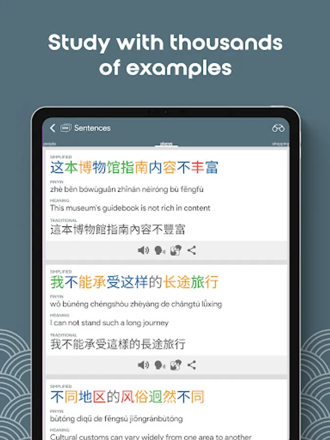 ● You will enjoy more than 4000 animations to know the direction and stroke order of any Chinese character.