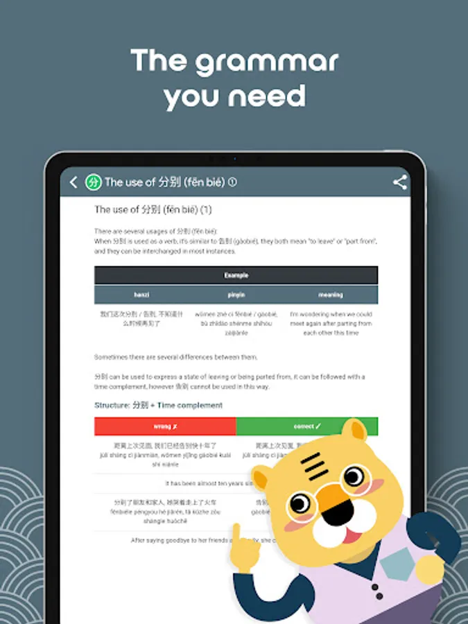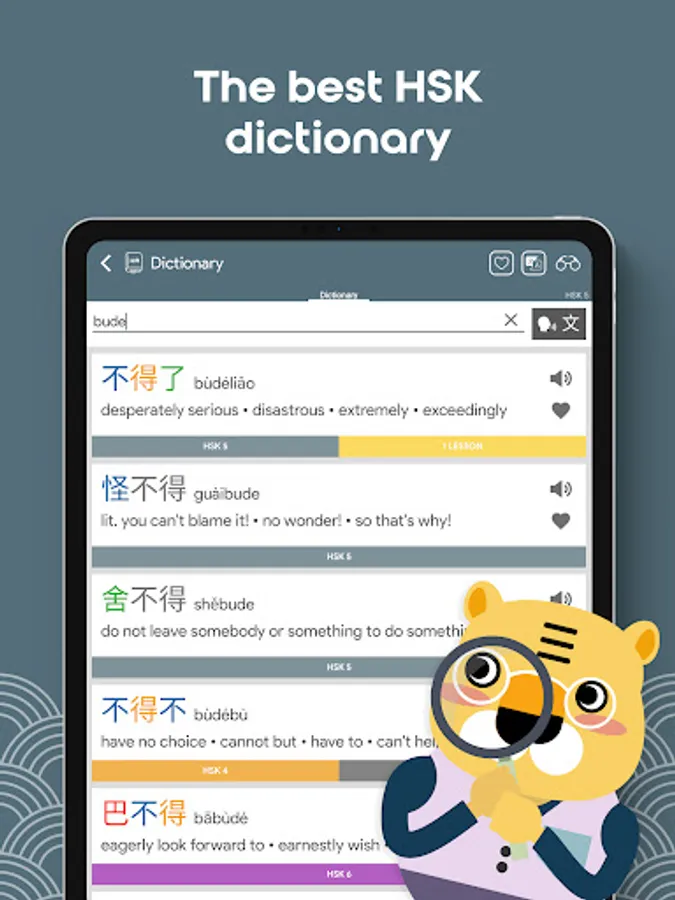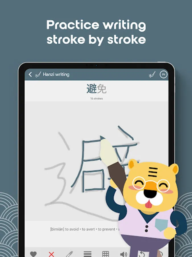 ● You will learn to write: an advanced writing system with automatic correction will allow you to easily learn how to write any Chinese character stroke by stroke.