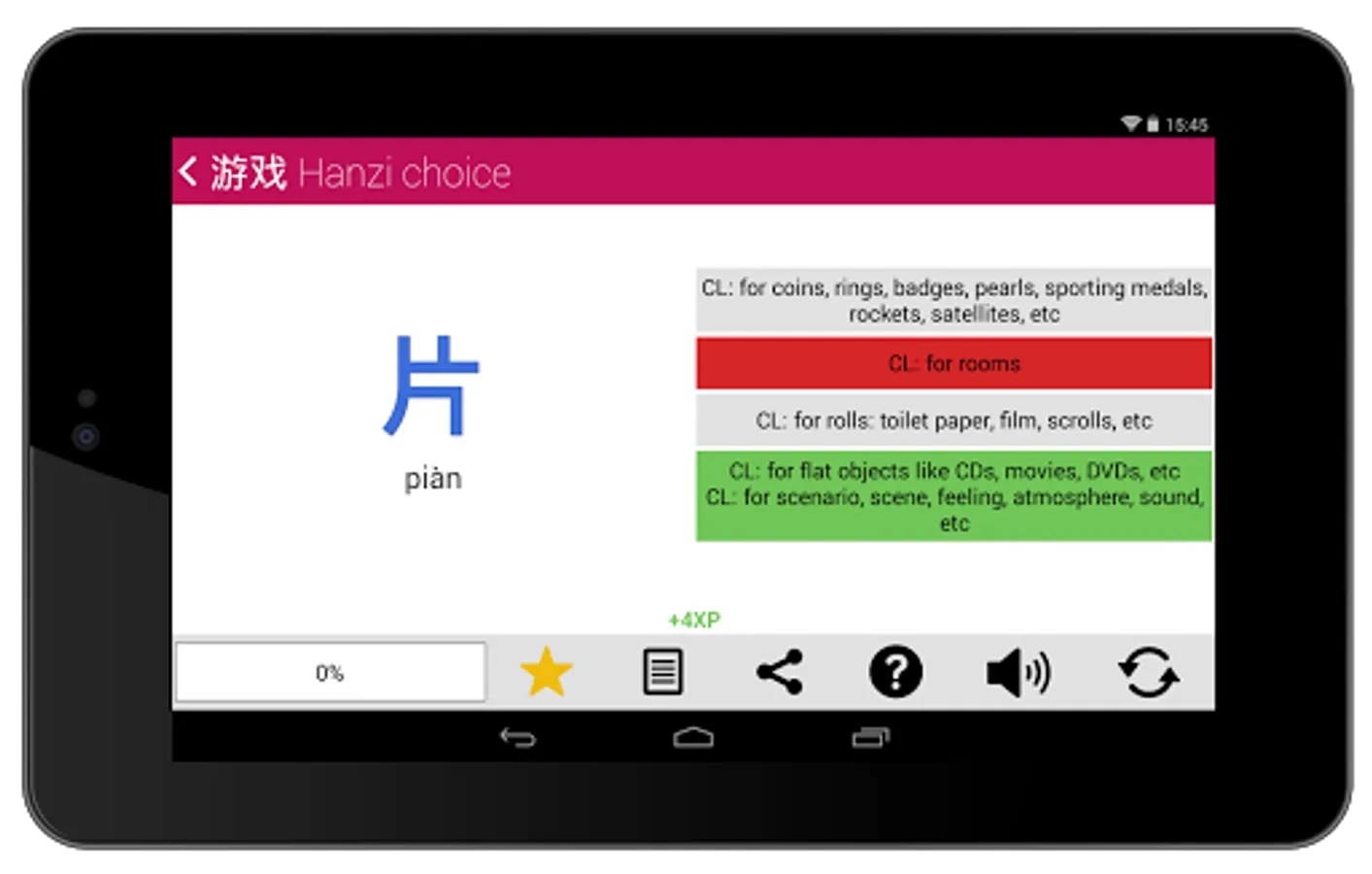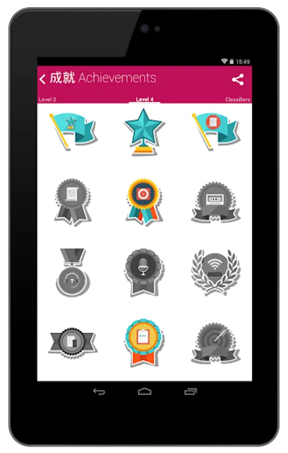 But there are more: 6 different games, +500 challenges and 24 achievements are waiting for you. With Chinese HSK Classifiers you will listen, speak, write and play while you are checking your progress. Full stats will show your learning progress and mistakes.
