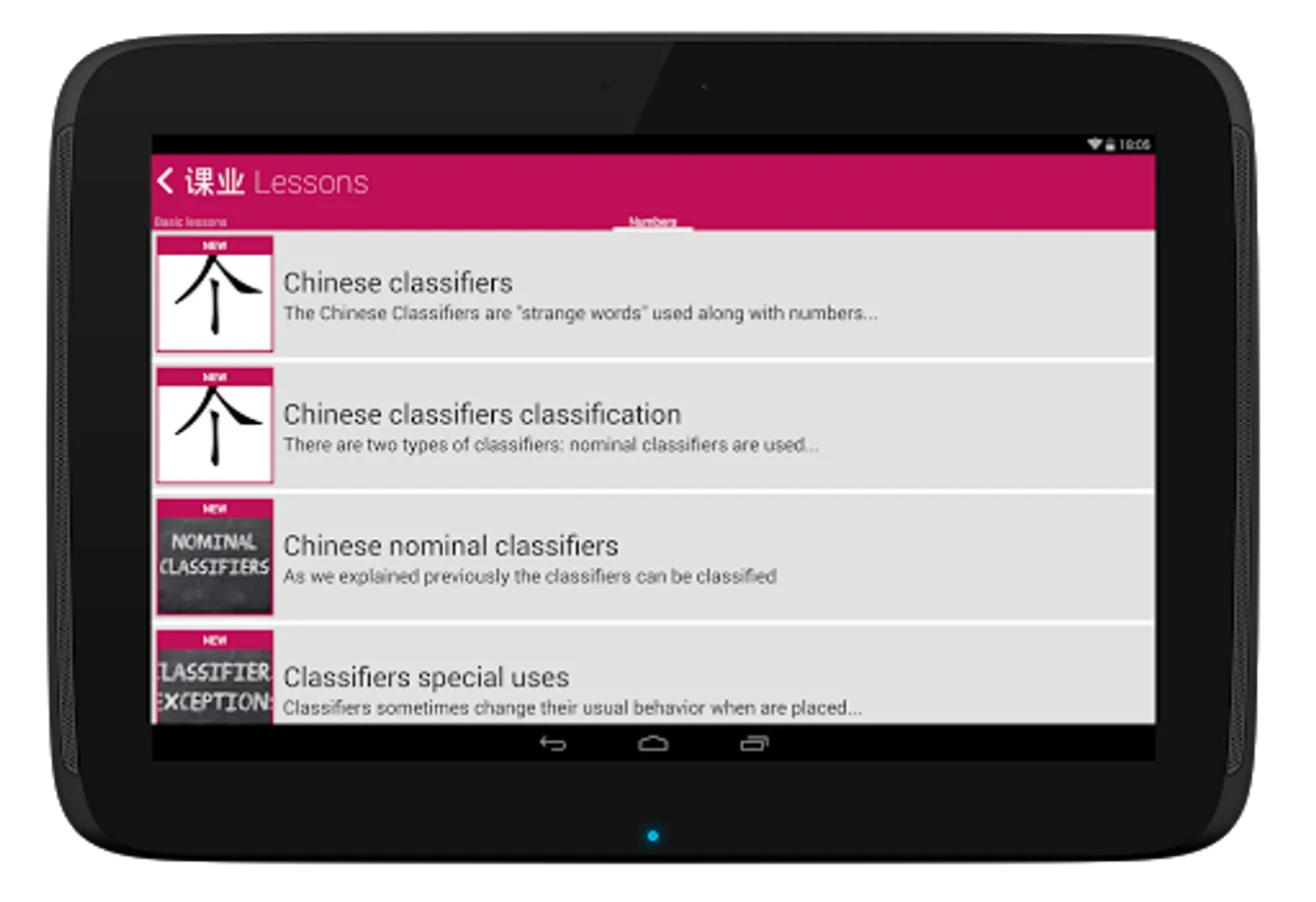 ● Chinese lessons (only in English, requires internet connection)