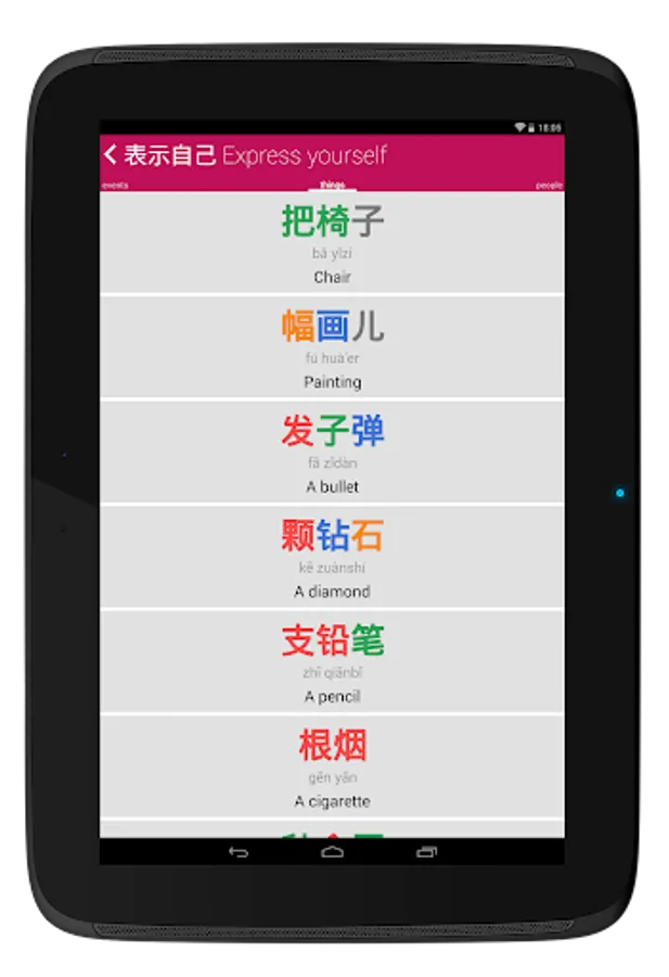In this application you will find comprehensive examples of use of the Chinese Classifiers, along 9 very common thematic: quantities, distances, hours, currency, time and other units.