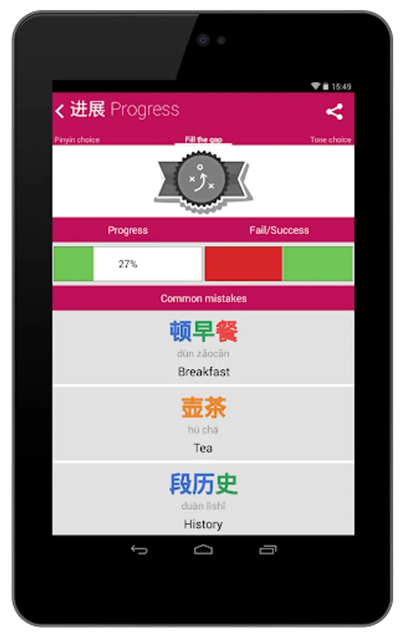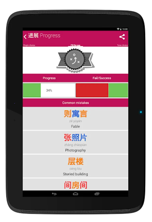 But there are more: 6 different games, +500 challenges and 24 achievements are waiting for you. With Chinese HSK Classifiers you will listen, speak, write and play while you are checking your progress. Full stats will show your learning progress and mistakes.