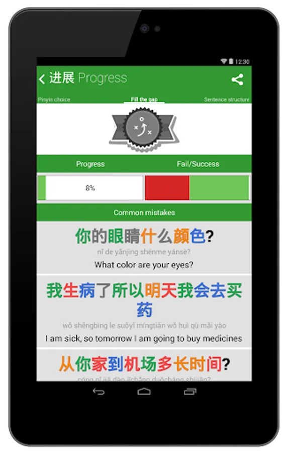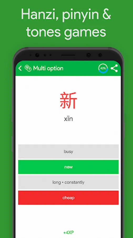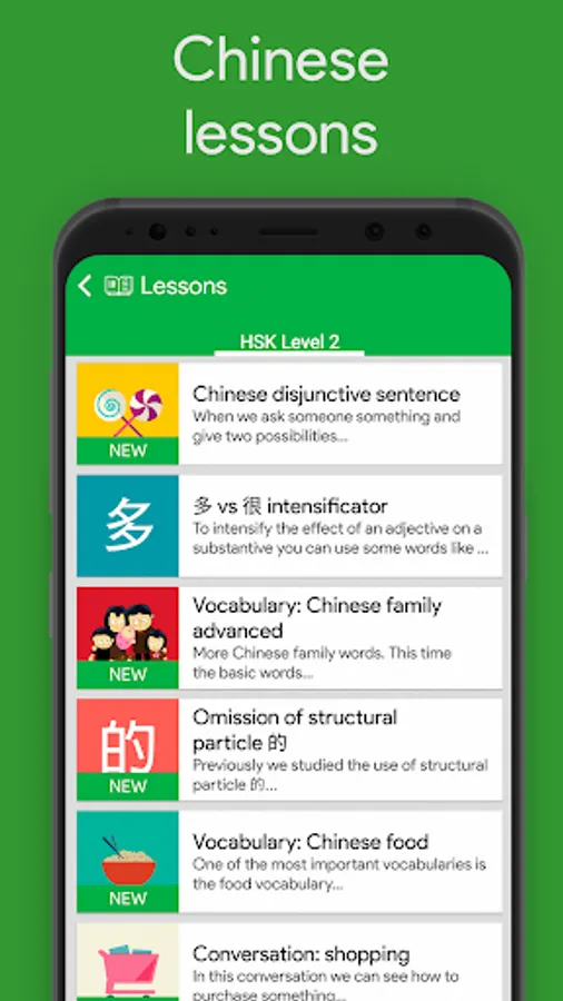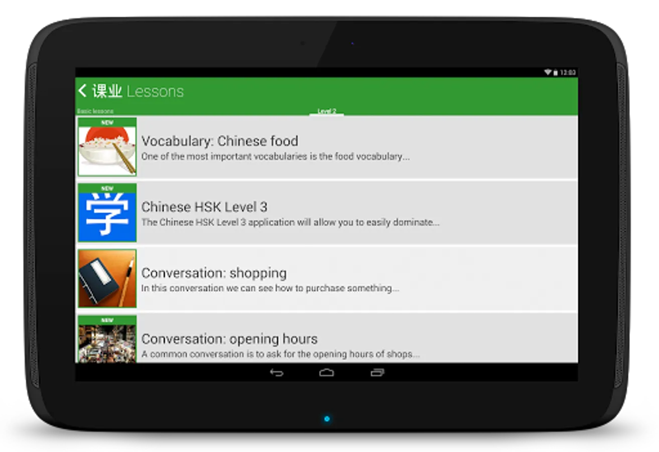 But there are more: 15 different games, 70 Picturecard/Flashcard, +2000 challenges and 33 achievements are waiting for you. With Chinese YCT Level 2 you will listen, speak, write and play while you are checking your progress. Full stats will show your learning progress and mistakes.