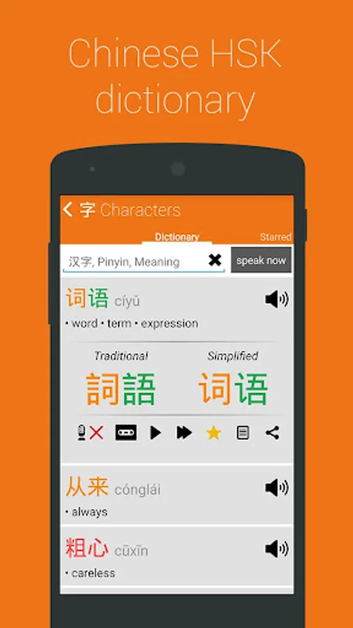 ● Search words by meaning, hanzi or pinyin