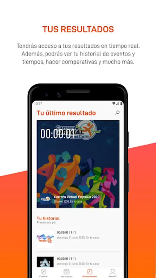 You can register quickly and safely and you will have access to your results in real time, photographs, purchase of products and you will also have all the information that will ensure you live the best Asdeporte experience. You can also consult tips and training programs, connect it with your social networks and much more.