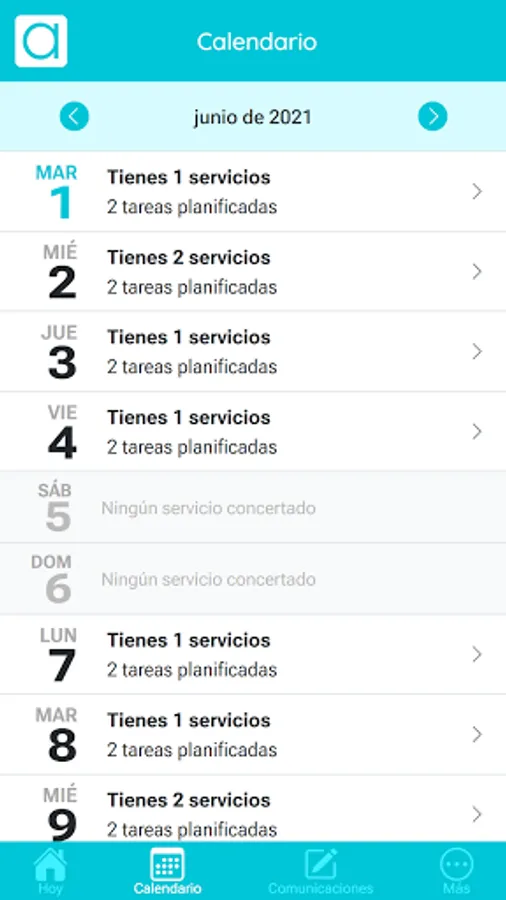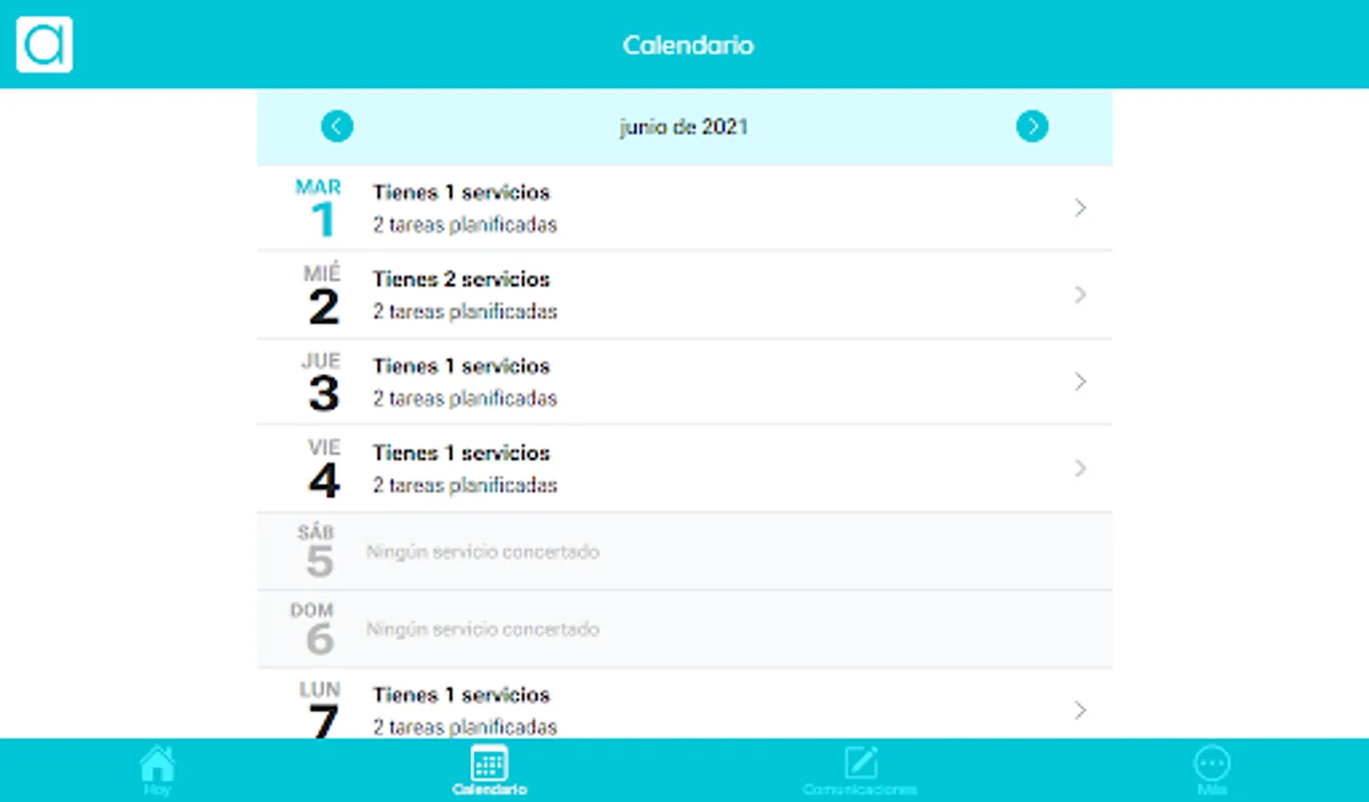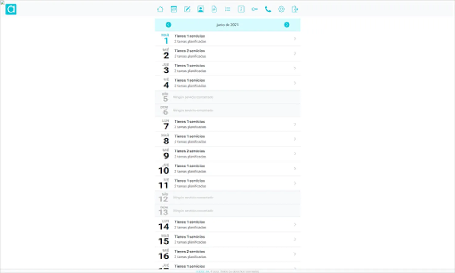 It allows the consultation of planned and planned services in the future, user profile data, their contracts, tasks and other valuable data.