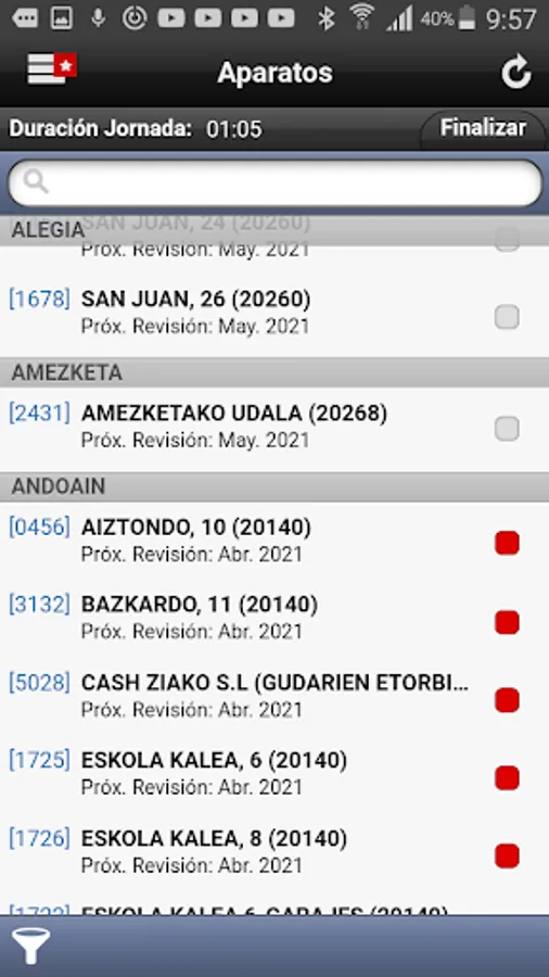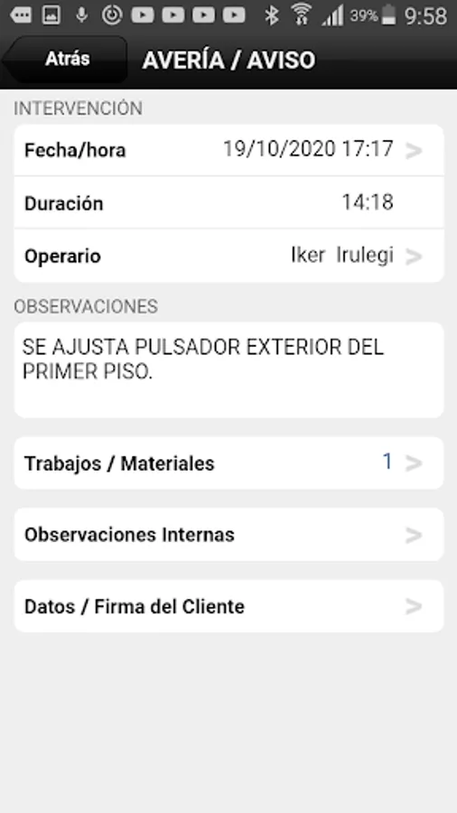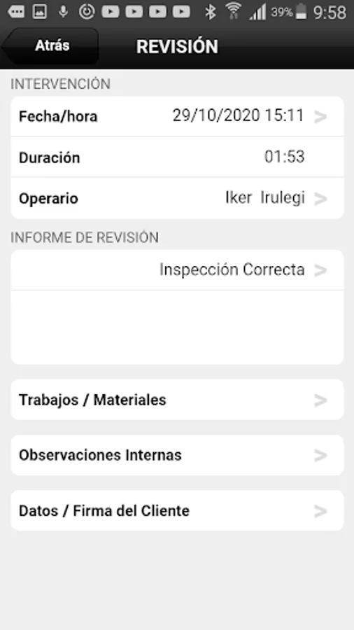 Operators use the iSAT-MUGUERZA application to view scheduled periodic reviews, start and end interventions, report their charges, print vouchers, collect customer vºbº, check the stock of spare parts, etc. while they go to the different locations and facilities of the clients: