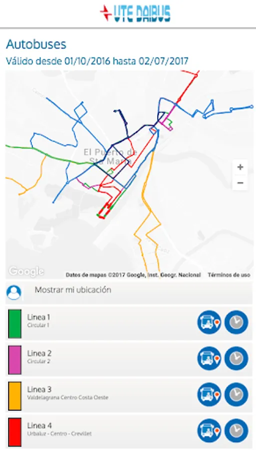 Approach to user information on urban public transport service in the city of El Puerto de Santa María offered in an intuitive interface to access back and theoretical information, timetables and notices; and secondly a personal location and location of buses in service in different lines.
