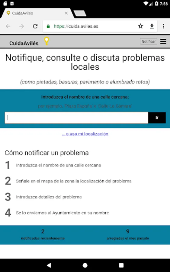 Cuida Avilés is mainly used to report things that are in poor condition, dirty or working illegally or improperly, and that need to be fixed or inspected.