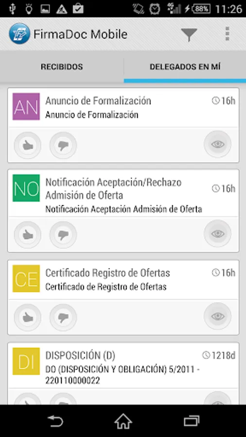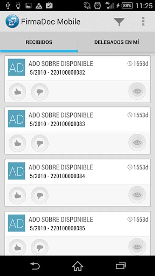 Mobile application that allows users FirmaDoc BPM do acts of approval or rejection of documents. It is the first mobile version of FirmaDoc with a range portafirmas exclusively so, but future versions will become another perspective to add to the already existing web FirmaDoc and FirmaDoc as document management, electronic signature and tracking records electronic mobile devices. It represents a great value added service, providing maximum efficiency in internal management, as it allows eliminate downtime circuit for processing documents of an administrative record for absences or displacements, since the user will have the possibility in your pocket electronically sign documents anytime, anywhere.
