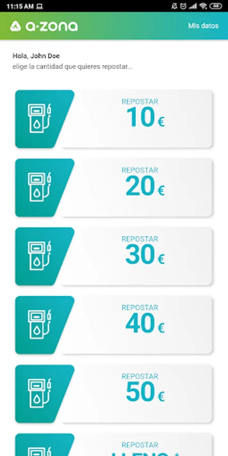 The different refueling possibilities shown in Euros will appear on the screen.
