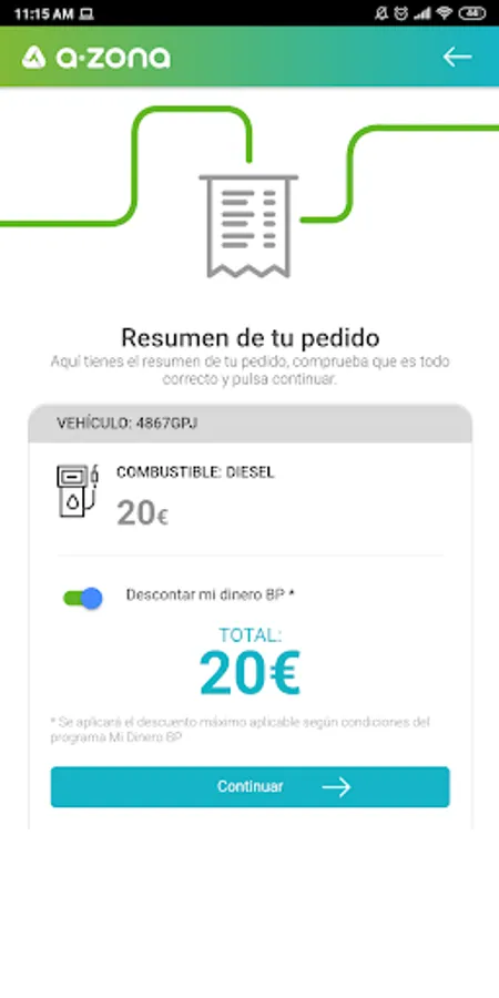 The final amount that will be charged may be reduced by the discounts accumulated on the BP card and this charge will only be effective when refueling at the La Galia station.