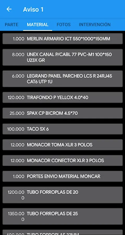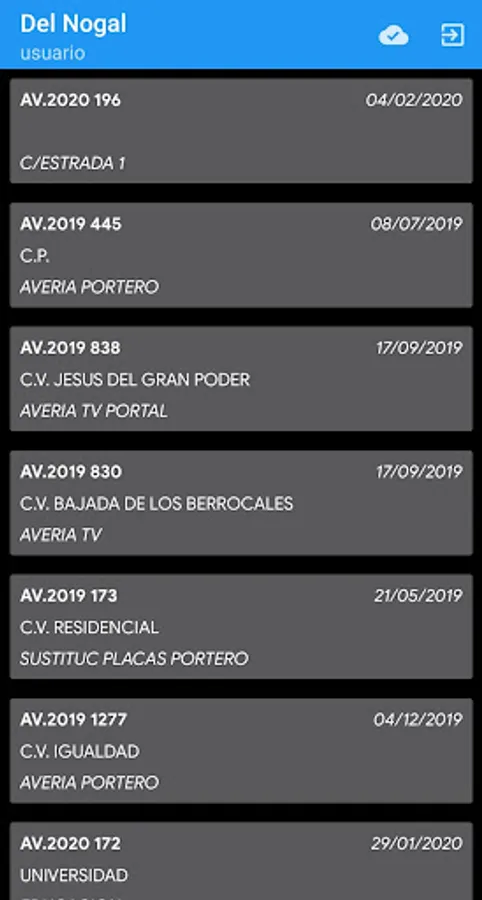 Application for employees of the company Del Nogal, for the management of notices, incidents, parts and materials.