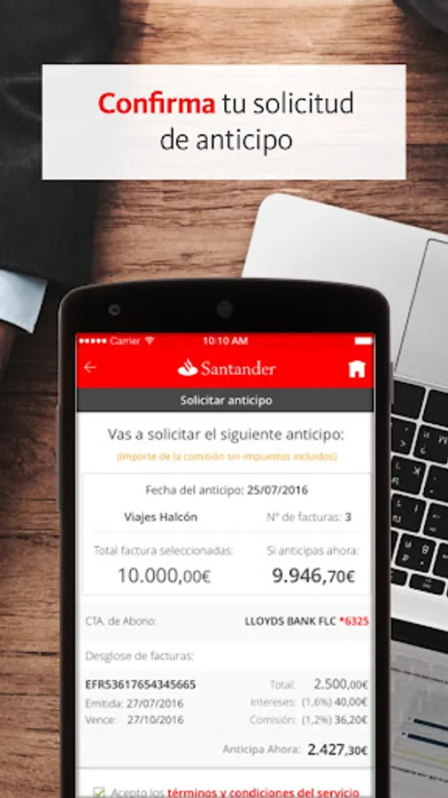 Now with the new App Confirming suppliers who are not customers of Banco Santander can anticipate customer invoices Santander.