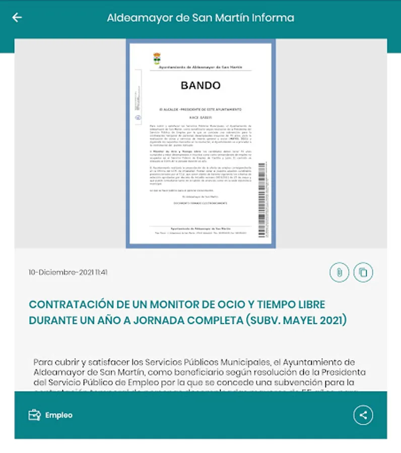 "Aldeamayor de San Martin Informa" is a communication service in real time, between the city and neighbors.