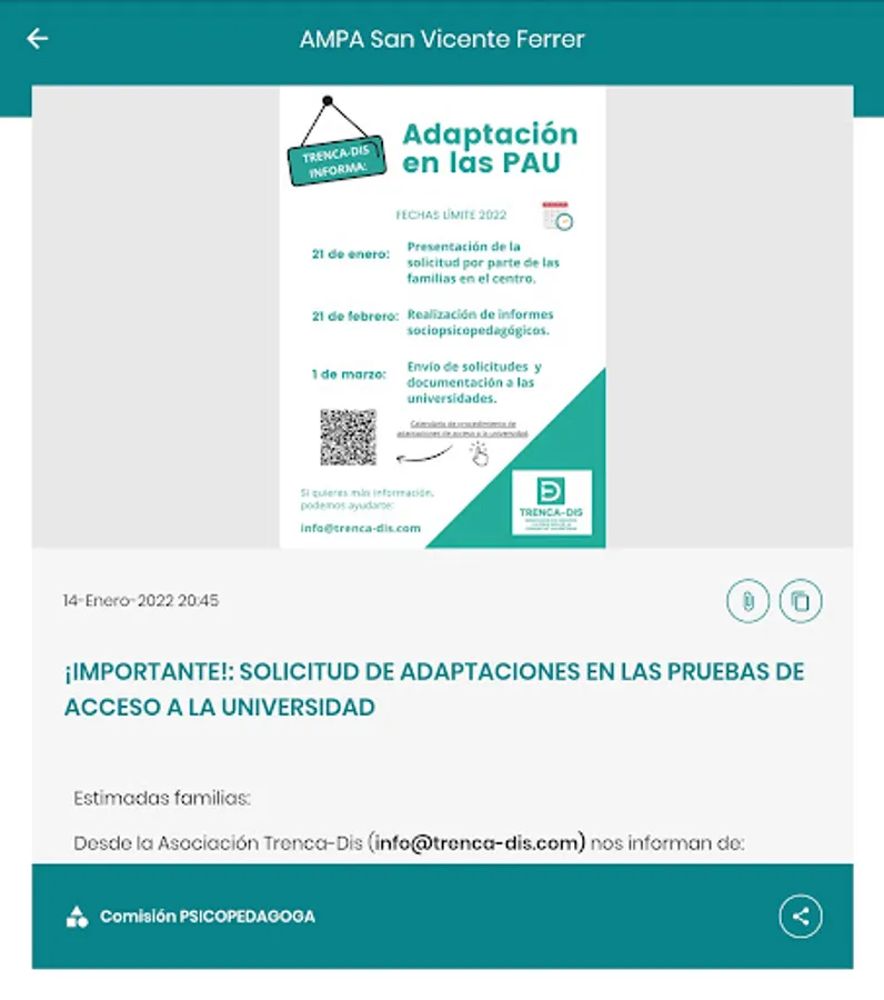 From this application we want to keep all the mothers, fathers and legal guardians of the students of the School informed and of the activities and news of interest that we carry out from the Board of Directors.