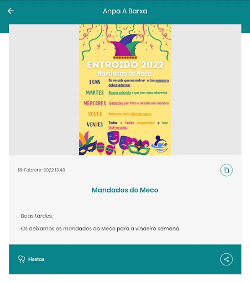 From this application we want to keep all the mothers, fathers and legal tutors of the students of the School informed and of the activities and news of interest that we make from the Board of Directors.