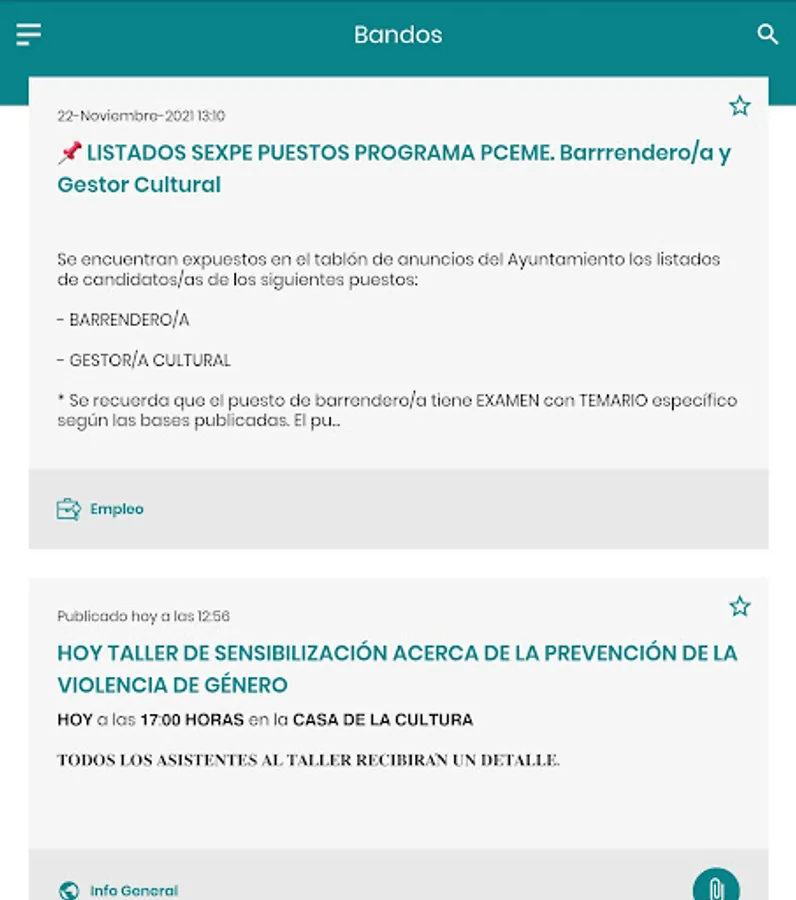 Thanks to this application you will receive on your mobile sides of general interest which the city of farm Torrehermosa published.